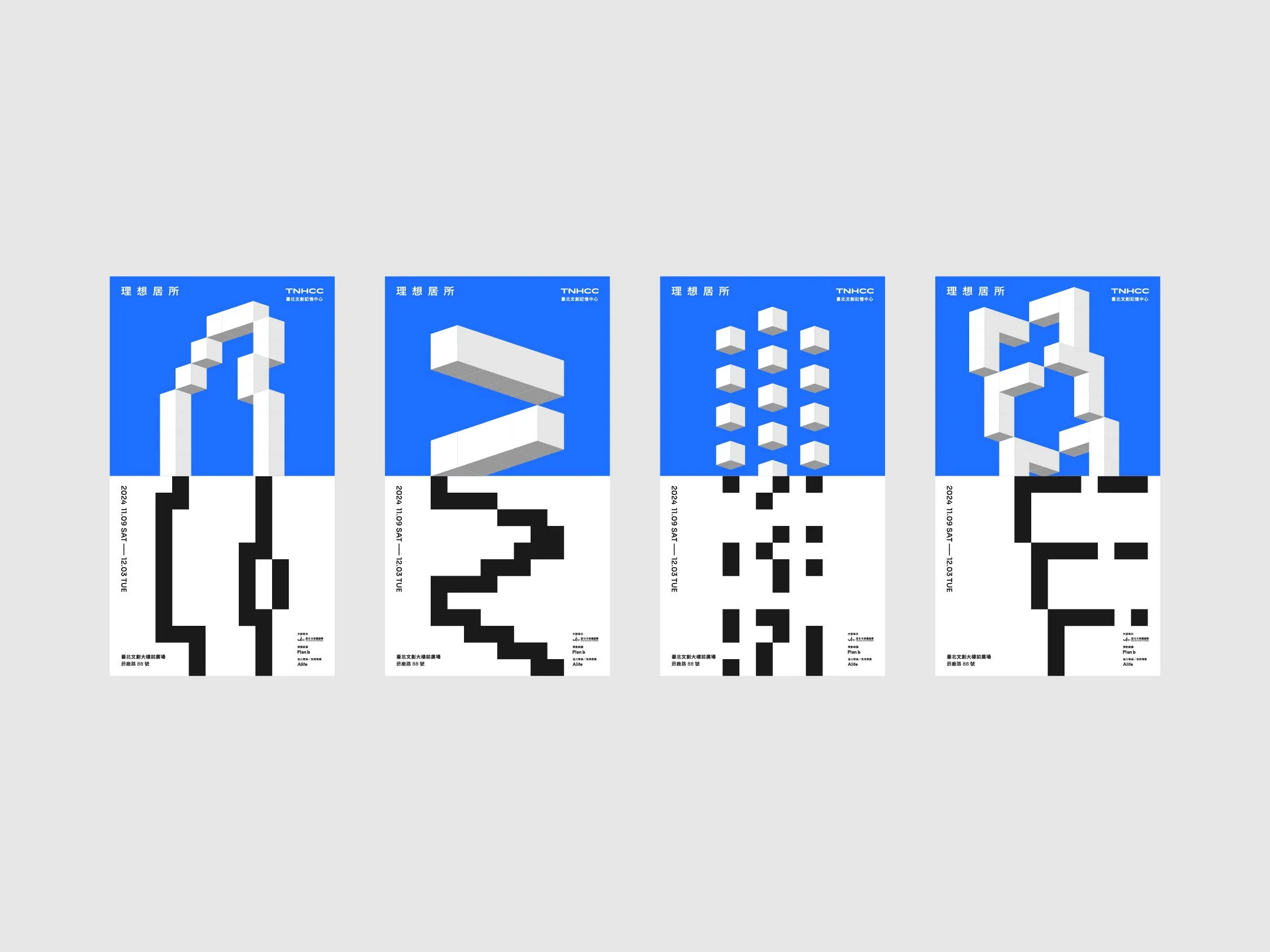 主視覺由平面的基本單位 Pixel 與立體的基本單位 Cube 作為視覺建構的元素,透過模組化的應用展現居住生活中不同尺度的想像與經驗,藉由無機單位造型建構出有機的圖像,回應居所的實與虛,更是對居住本質的叩問。